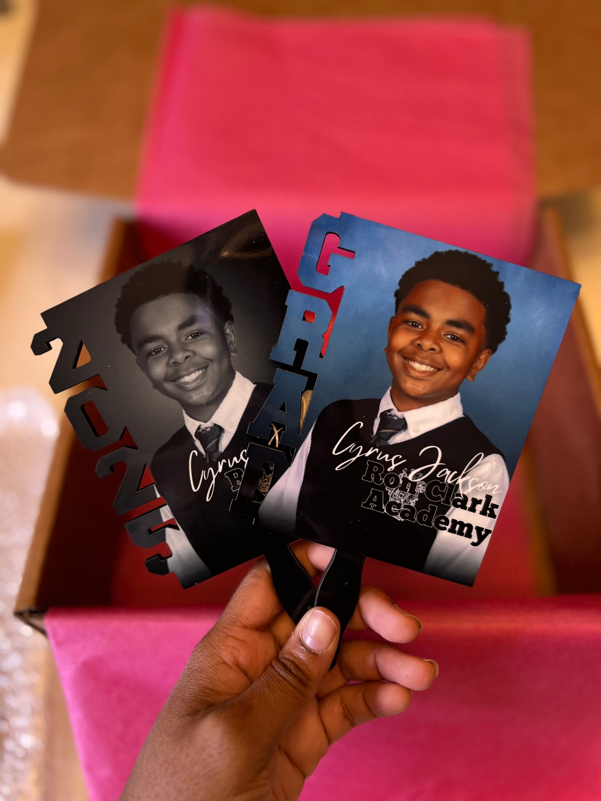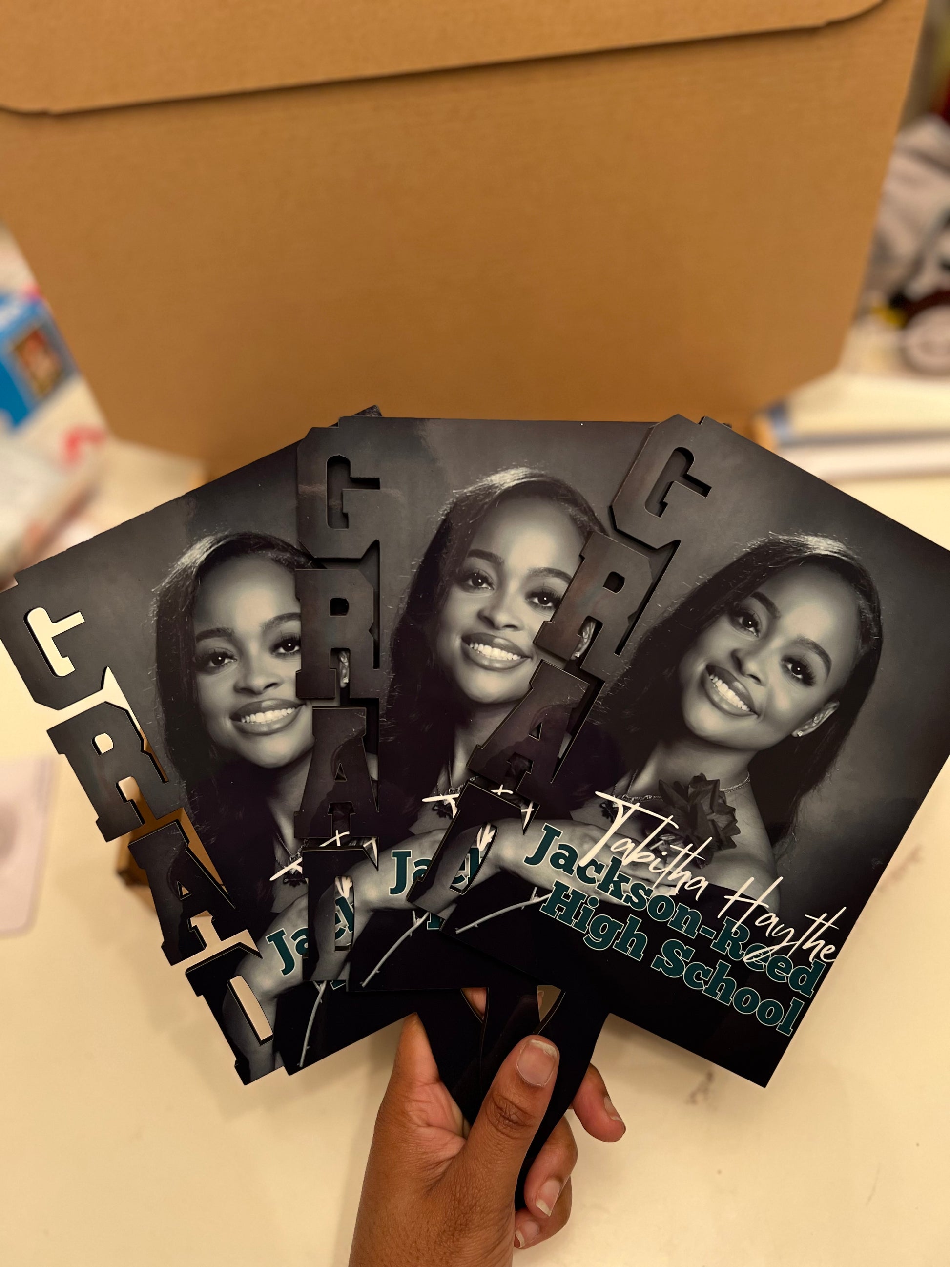 Graduation Hand Fans, GradFans, Custom Face Fans with Handles, Custom Graduation Fans, Sublimation